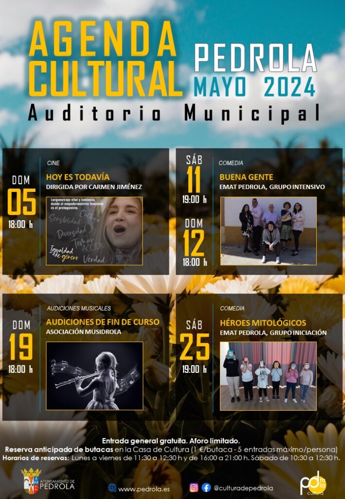 La Concejalía de Cultura anuncia los espectáculos culturales que se celebrarán durante el mes de mayo de 2024 en el Auditorio Municipal.