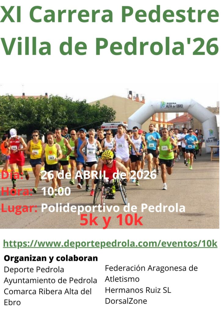El próximo día 26 de abril de 2026 se celebrará en Pedrola la XI edición de la Carrera Pedestre Villa de Pedrola.